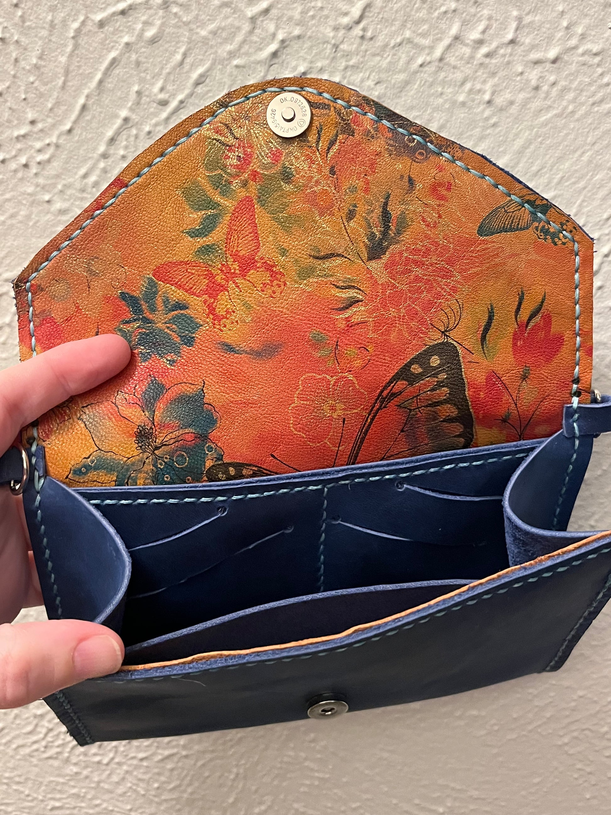 -Handcrafted leather clutch